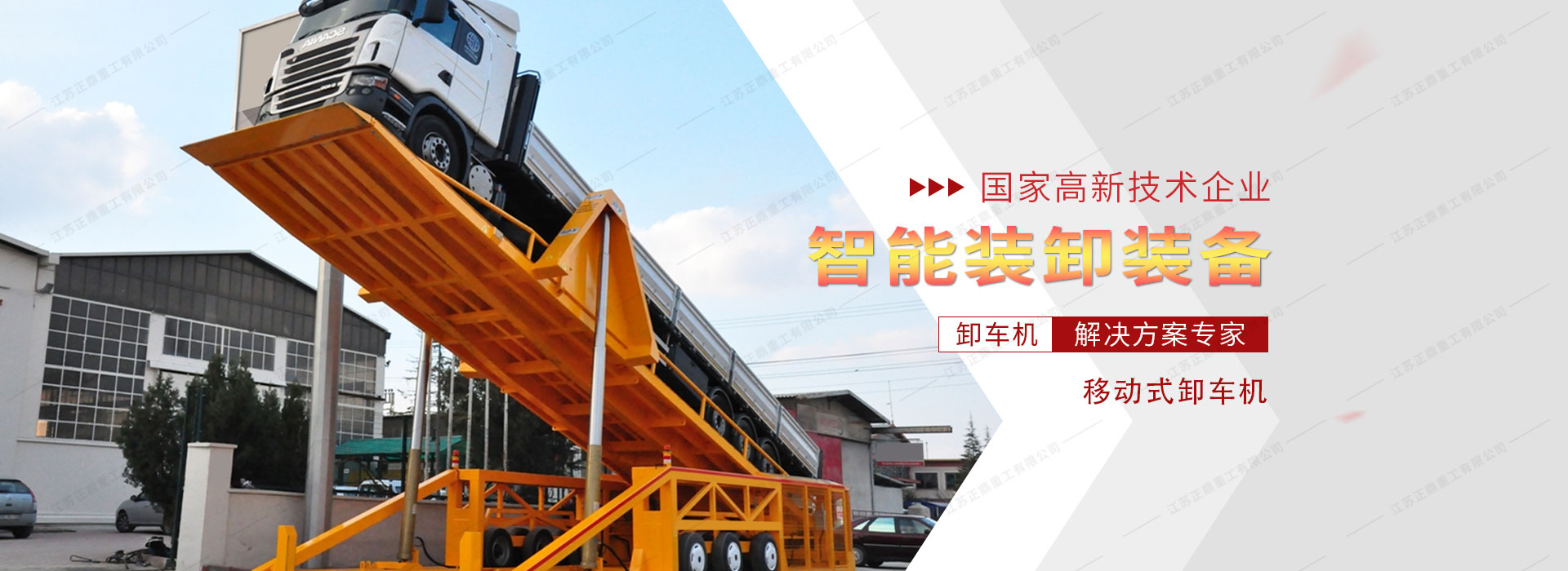 公司主要從事各種汽車裝卸、集裝箱裝卸、船舶裝卸等自動化裝卸設備的研發、制造、銷售,為不同行業的客戶提供系統的解決方案。產品暢銷國內外,廣泛用于糧油食品、飼料、化工、鋼鐵、冶金、礦山、發電、水泥等行業。